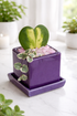 Bring a touch of charm and rare beauty to any space with this stunning Hoya Flame Kerrii Heart, nestled in a modern ultra-violet cube pot and paired with a variegated String of Hearts. Known for its thick, heart-shaped leaves and slow, steady growth, this unique plant is both a meaningful gift and a stylish décor piece.